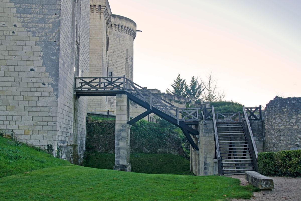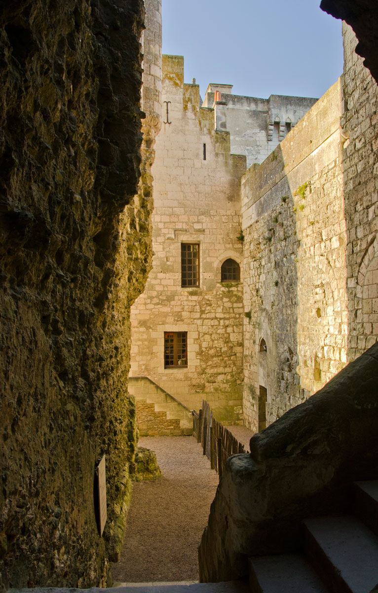 In cetate se intră, așa cum vă spuneam, pe Porte Royale, poarta regală, impresionantă prin măreția sa, care a fost construită în mai multe reprize, între secolele XIII-XIV. Zidul care încercuiește cetatea și din care face parte și poarta a fost construit de Henri II Plantagenêt în a doua parte a secolului XII, acesta fiind întărit în secolul XIII, în special prin săparea de fose.