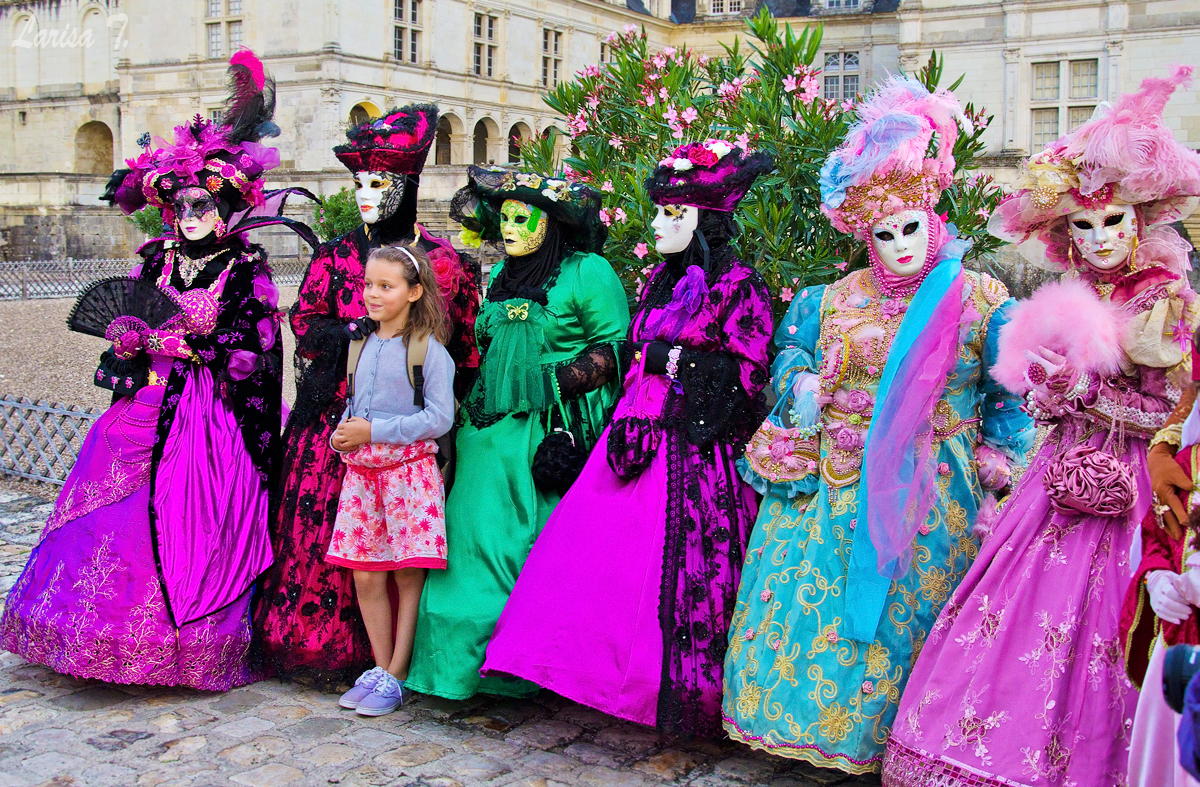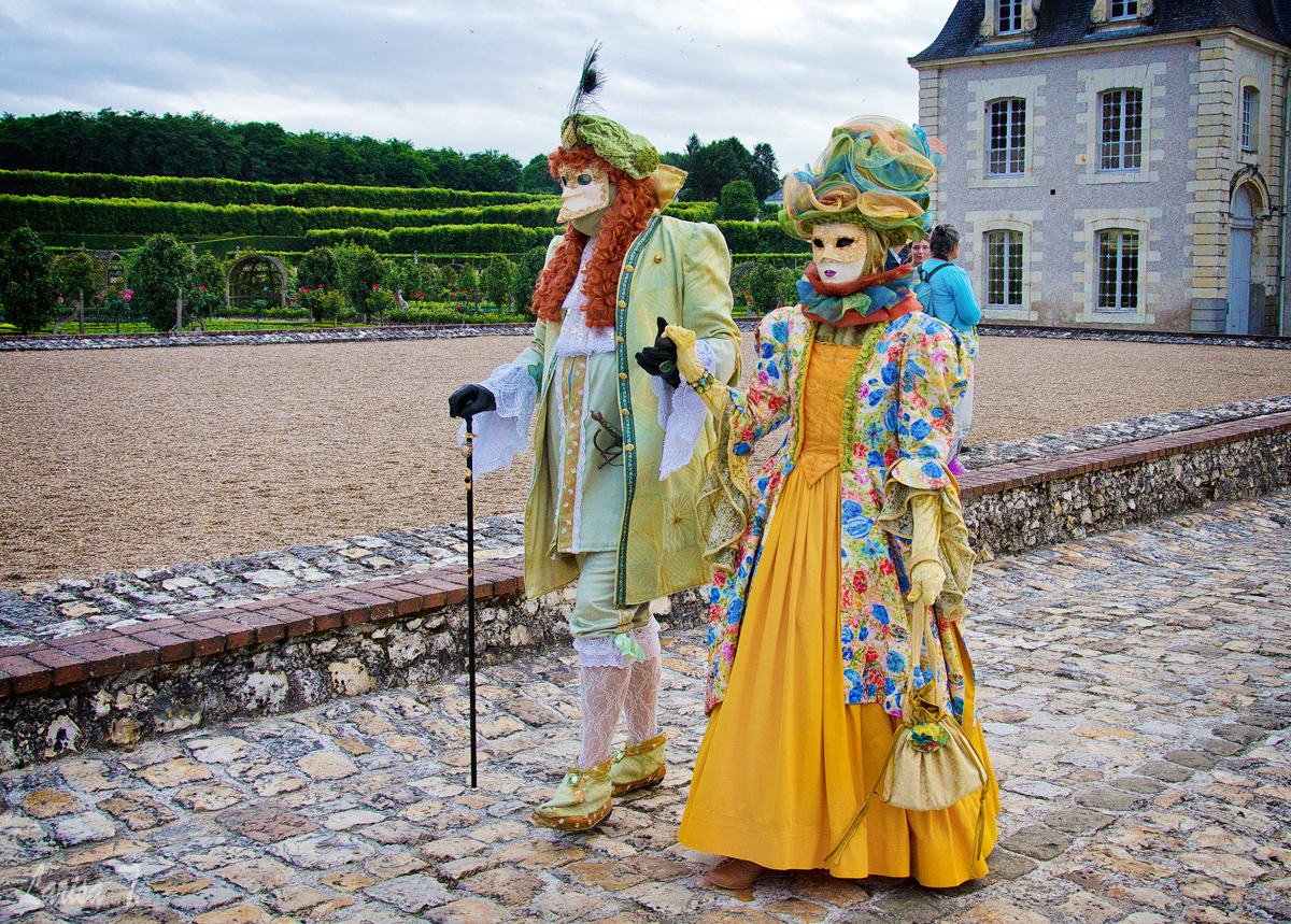 Ne-am prezentat în jurul orei 21 la poarta castelului, oră anunțată de organizatori pe site, noi și încă câteva sute de oameni, localnici și turiști, și am așteptat deschiderea casei de bilete cu o bere în mână la braseria de la intrare. În schimbul sumei de 9.50 euro de persoană, superbele grădinile ale castelului Villandry se pot admira două nopți pe an și asta nu oricum, ci luminate feeric de 2000 și ceva de lumânări. Deși eu abia anul ăsta am auzit de festival, în 2014 Nuits des Mille Feux a numărat cea de-a 15 ediție consecutivă. Eu am ales seara de sâmbătă pentru vizită și asta nu numai pentru că era mai la îndemână, ci și pentru că în program, pe lângă plimbarea propriu-zisă pe alei printre lumânări, un concert de muzică renascentistă și un foc de artificii la final, se anunța o paradă de costume și măști venețiene.