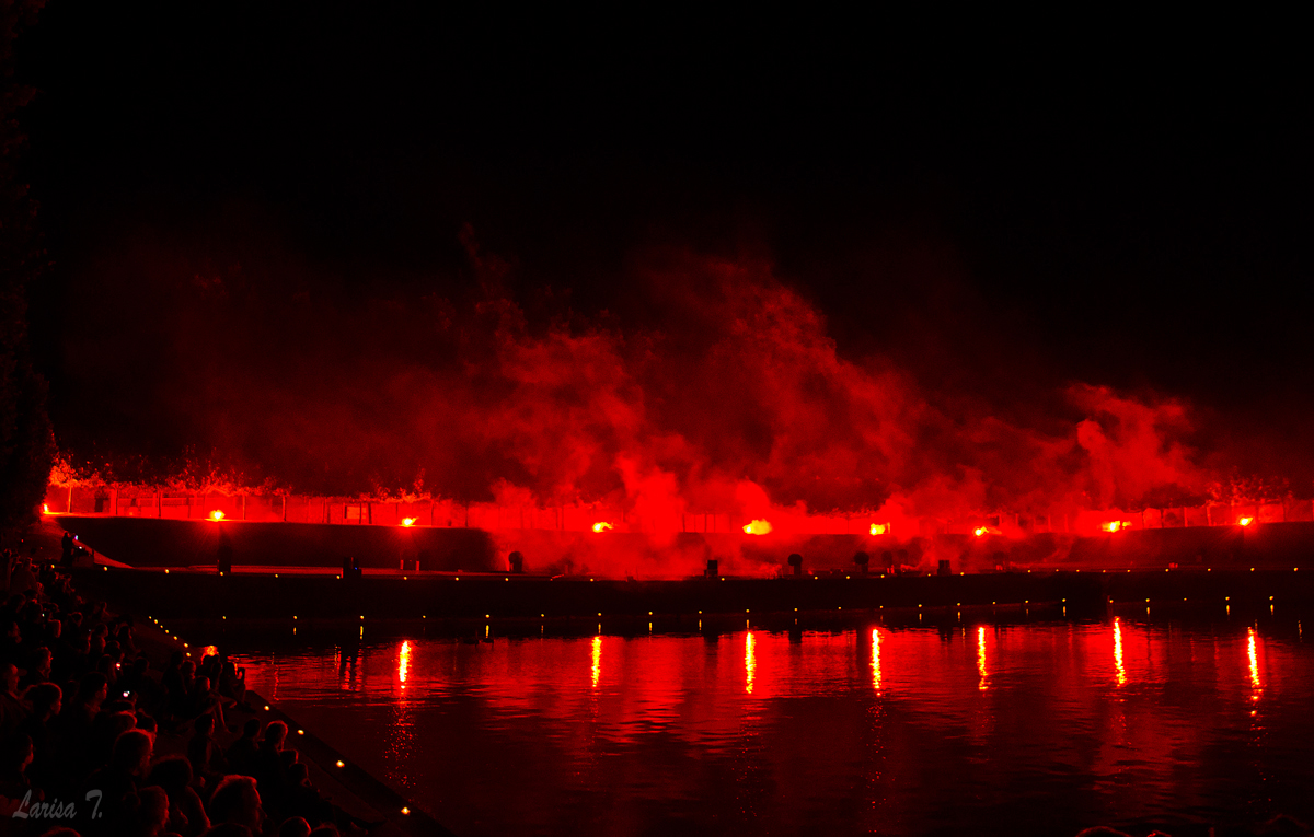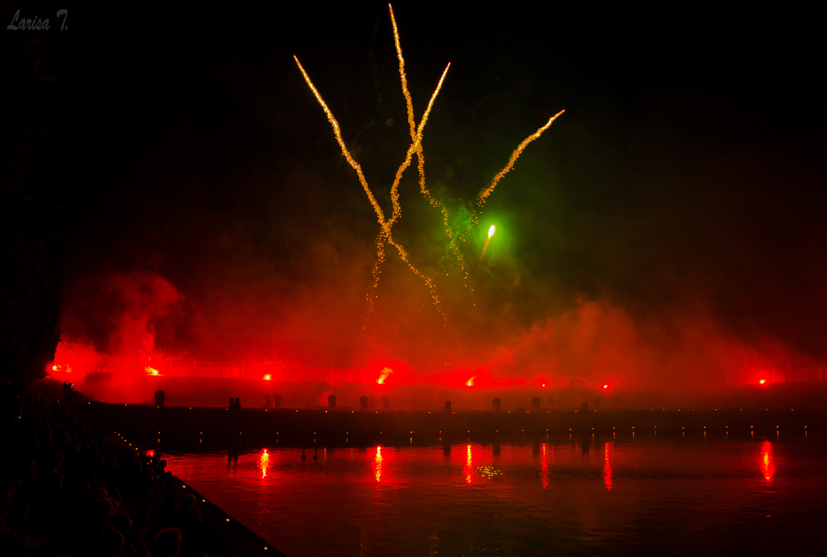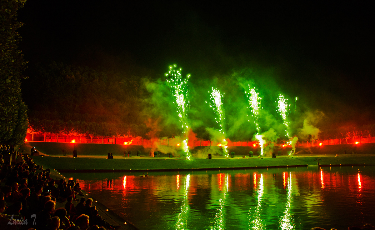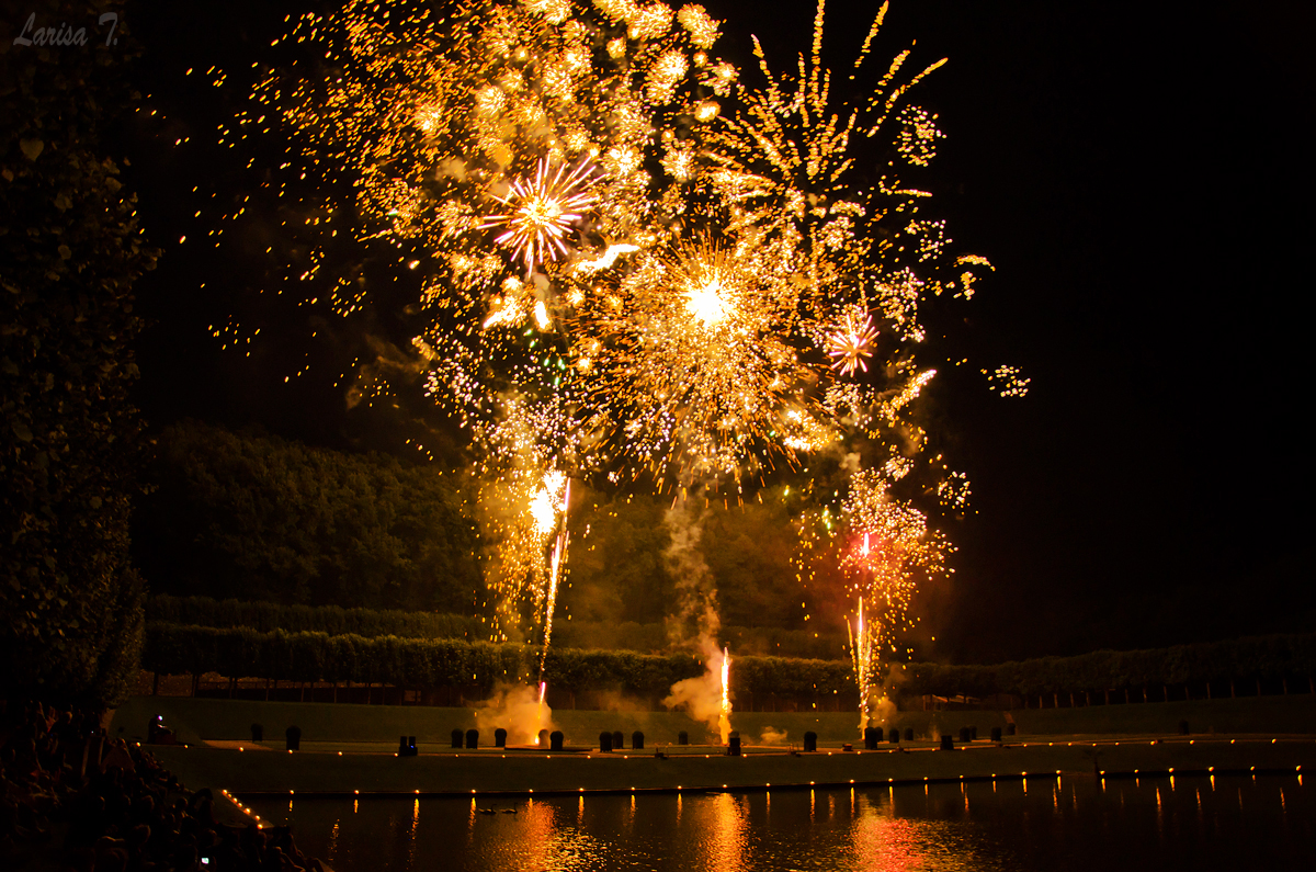 Seara s-a încheiat cu un spectacol de lumini și un foc de artificii deasupra iazului. Pentru asta am oprit și noi plimbarea și am luat loc pe malul apei. Au fost superbe, chiar dacă nu am reușit să le imortalizez prea bine, deh, trebuie să mai exersez. Noroc că lunea viitoare e 14 iulie! În jurul orei 23.30 s-a terminat totul, odată cu ultimele și cele mai spectaculoase artificii care au luminat cerul. Împreună cu toată lumea am părăsit incinta castelului, îndreptându-mă spre parcare, fascinată de ceea ce văzusem și cu două gânduri în minte: să nu ratez sub nici o formă Nuits des Mille Feux de vara viitoare și să văd Veneția la anu’ în carnaval.